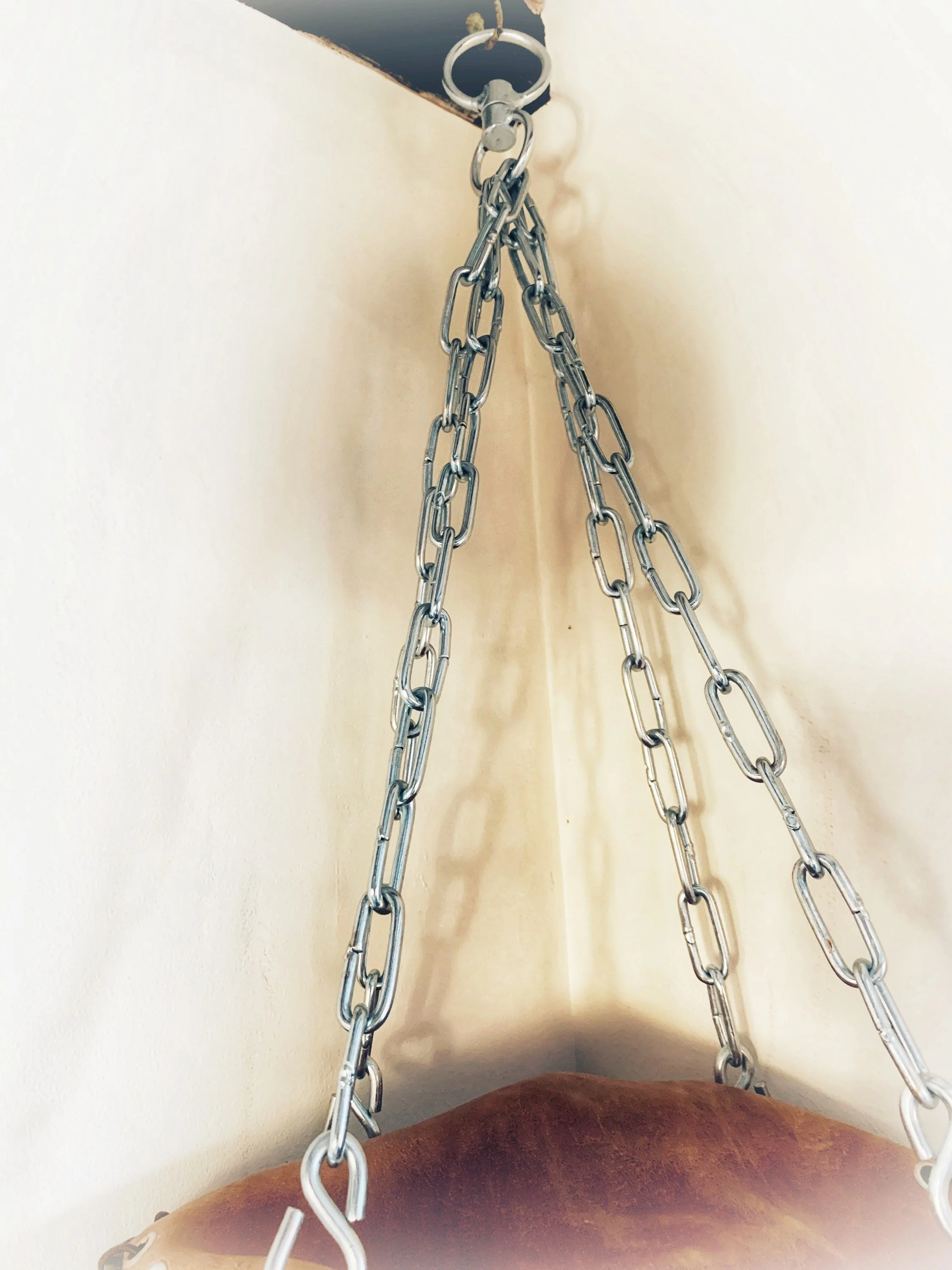 Retro Reborn Vintage leather Boxing bag with chains and swivel ring (un-filled)